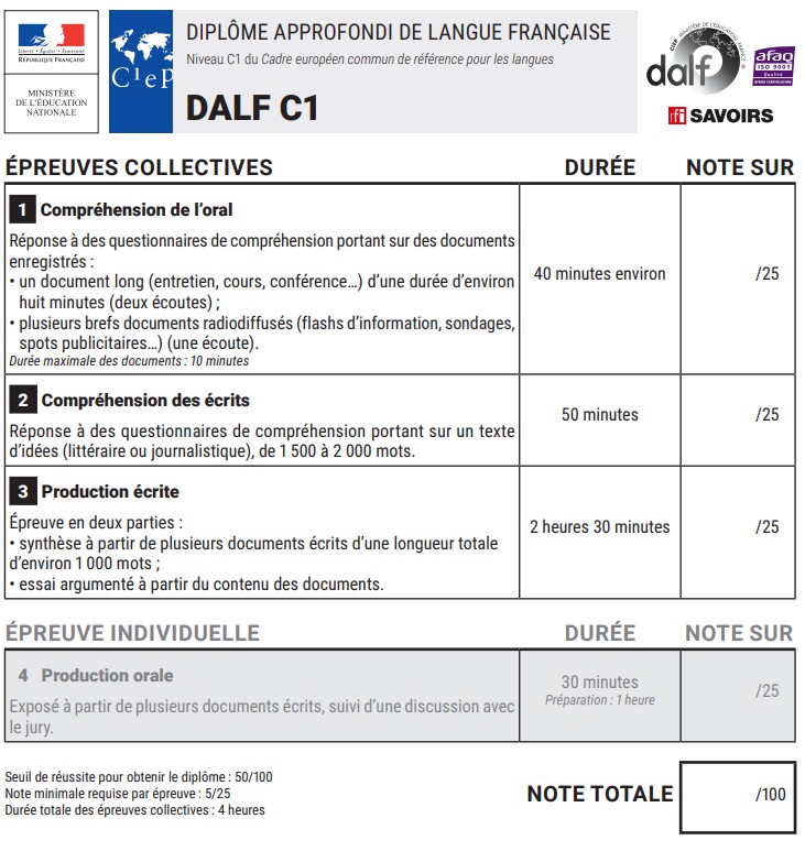 🧩 Les parties de l’examen DALF C1